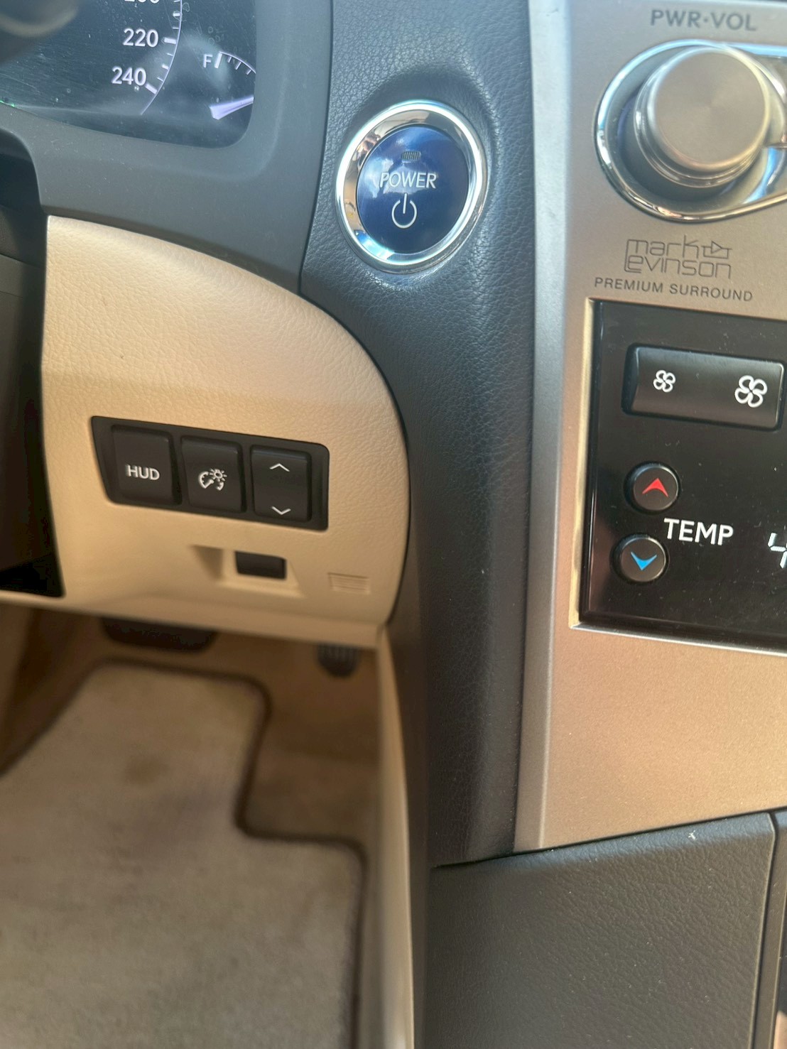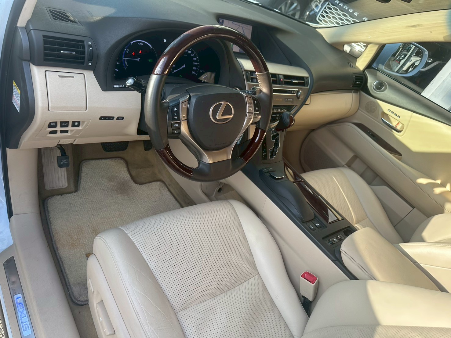 手套箱上方追加鈦銀飾條,呼應方向盤及中控台的銀色塗裝,突顯內裝的高級質感。儀錶資訊顯示區部份局部加大,提高視覺閱讀便利性。配備Mark Levinson音響,按鍵位置重新配置,讓整體操作更為簡便。HUD多功能抬頭顯示幕追加檔位顯示功能(RX450h頂級版專屬),USB/AUX-IN外接式音源高速傳輸介面位置貼心移到中央扶手箱前方,大幅提高使用便利性。