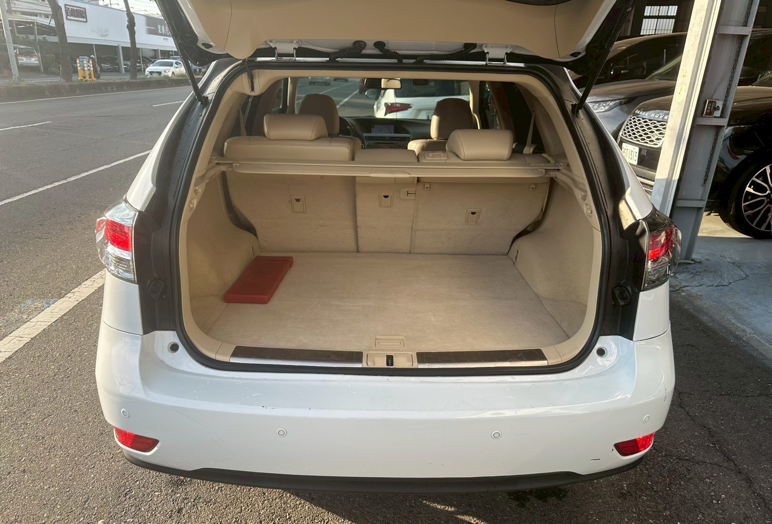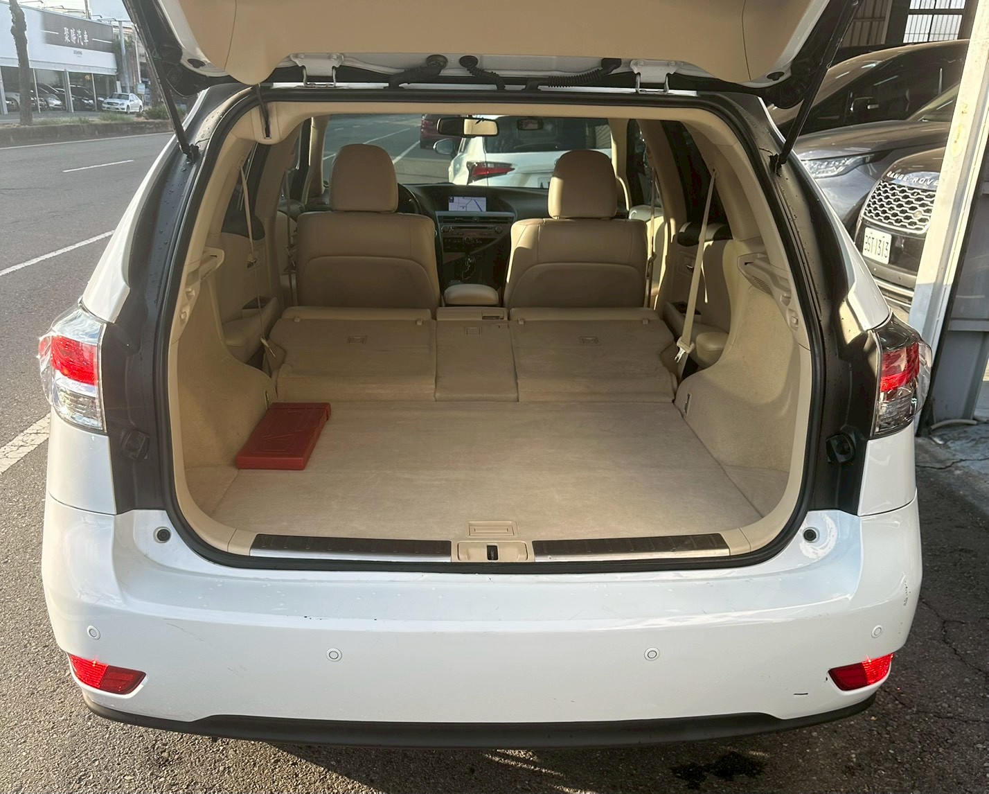 除尾燈組顏色加入紅色元素,全新設計的大型鍍鉻牌照框飾條,呼應尾燈的流線感,延伸RX車系尊貴大器的風貌。