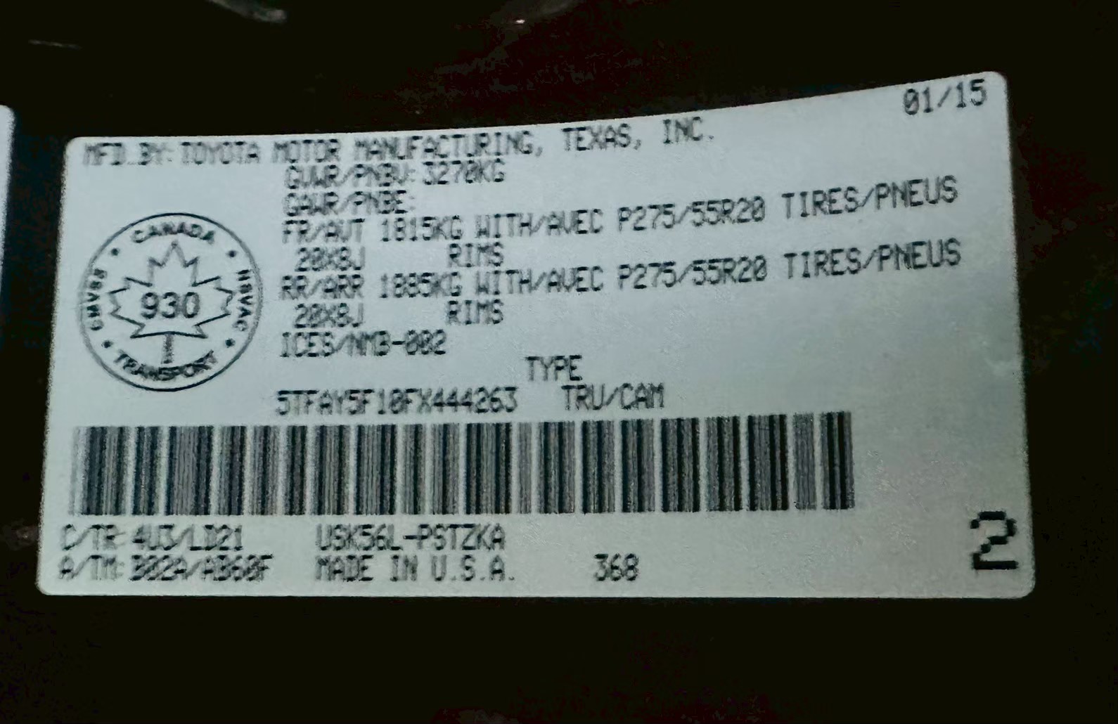 2015 TOYOTA TUNDRA 1794 EDITION 紀念版