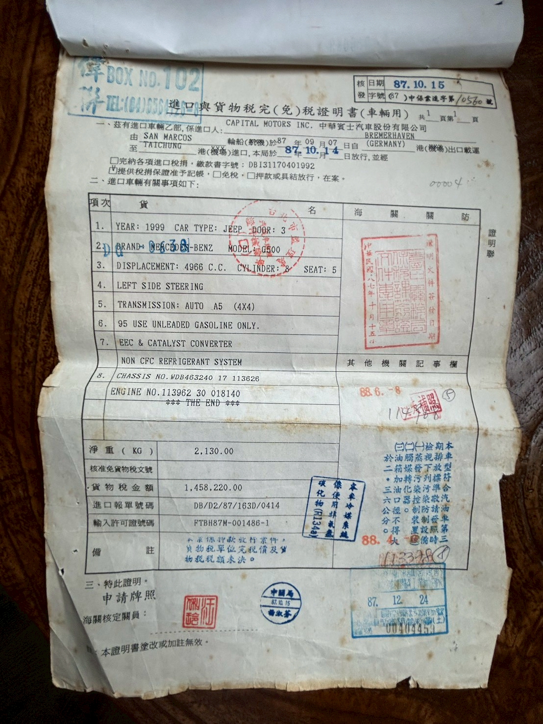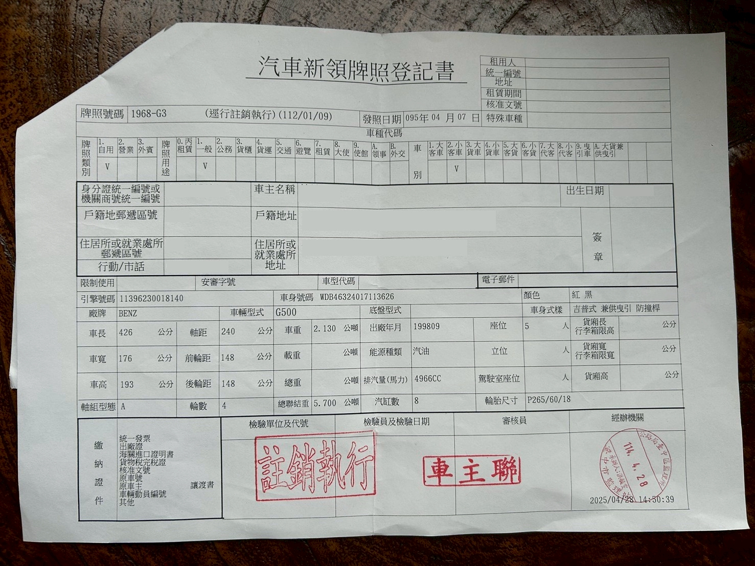 1999年式 總代理 中華賓士 Mercedes Benz G500 SWB