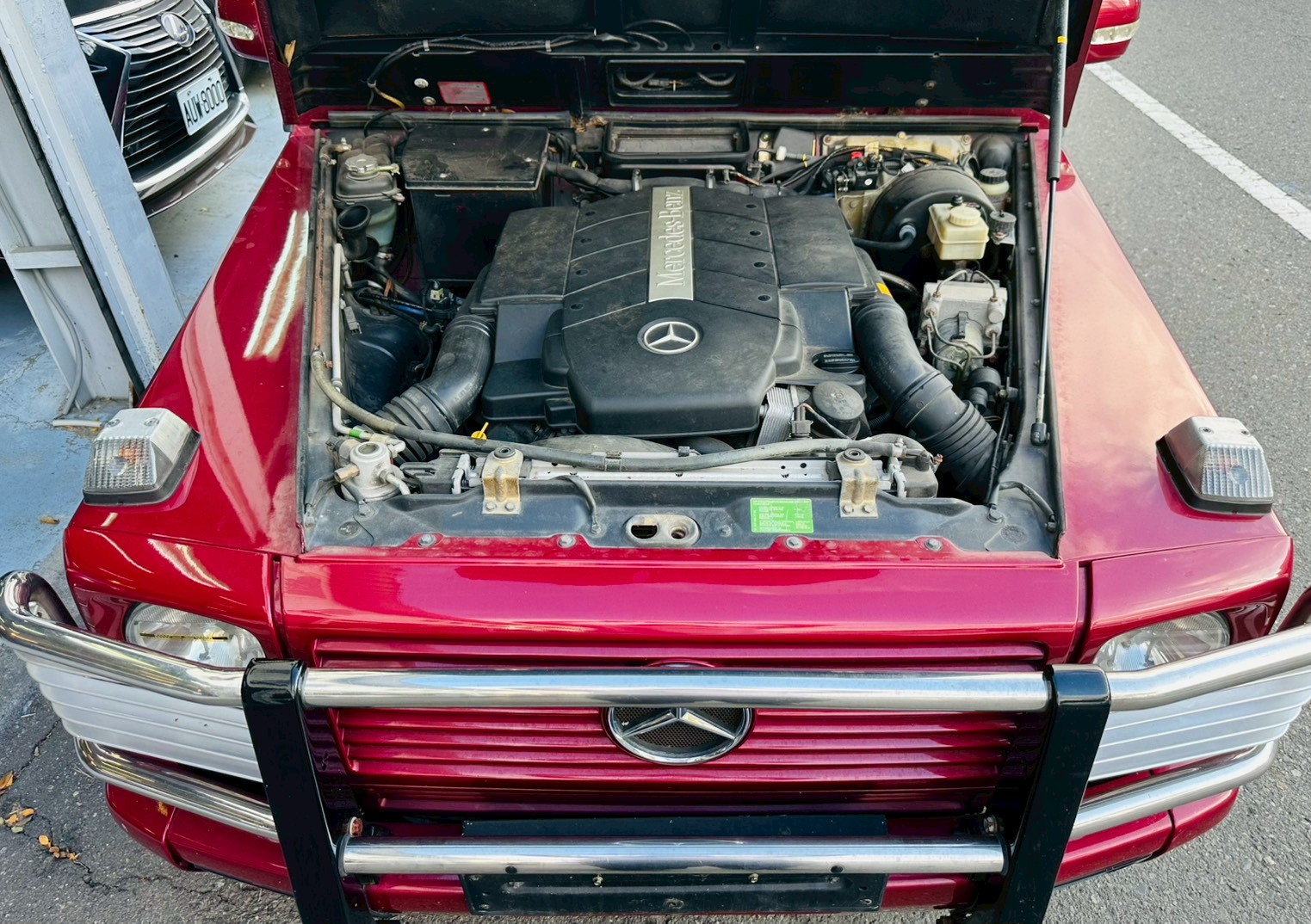 這台1999年式年的 Mercedes-Benz G500 起出以品牌經典的紅黑配色呈現,再進行精品配件改造,增添一種獨特且引人注目的外觀。
