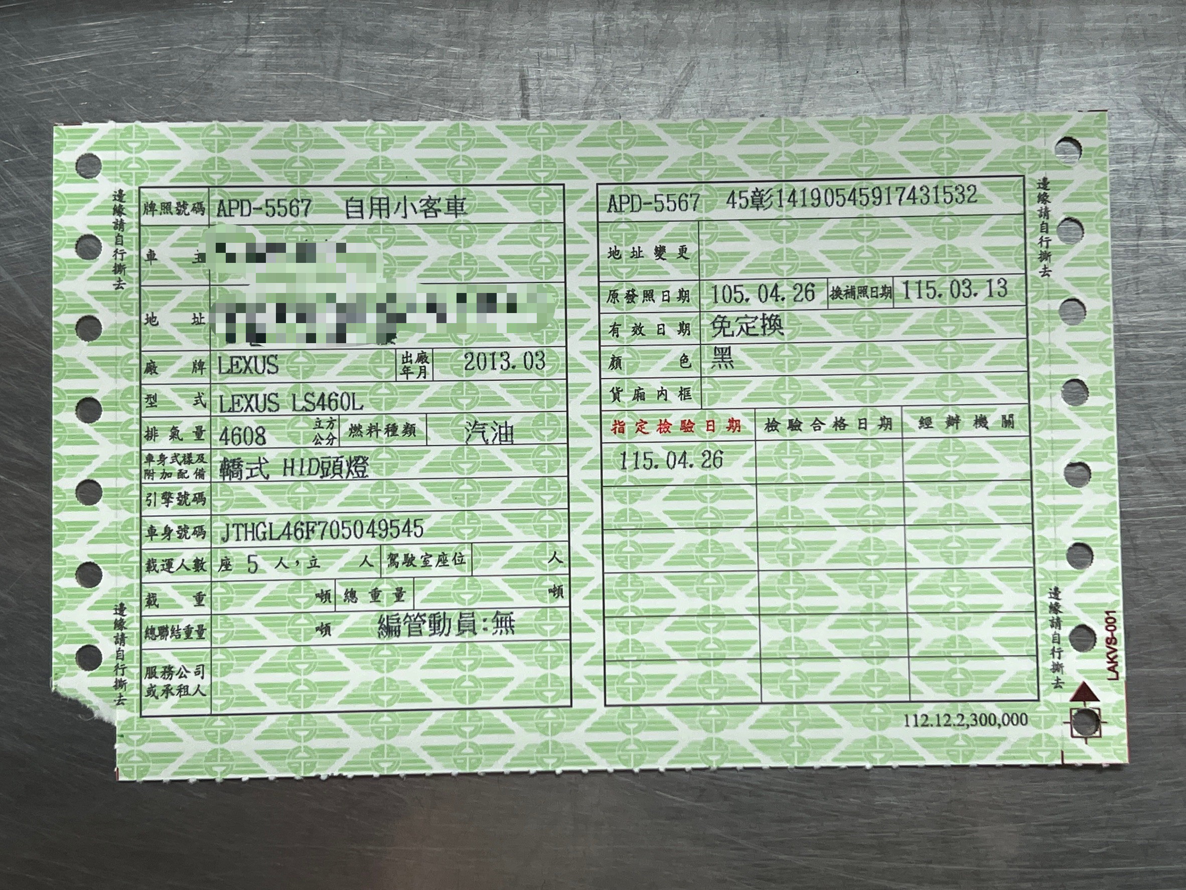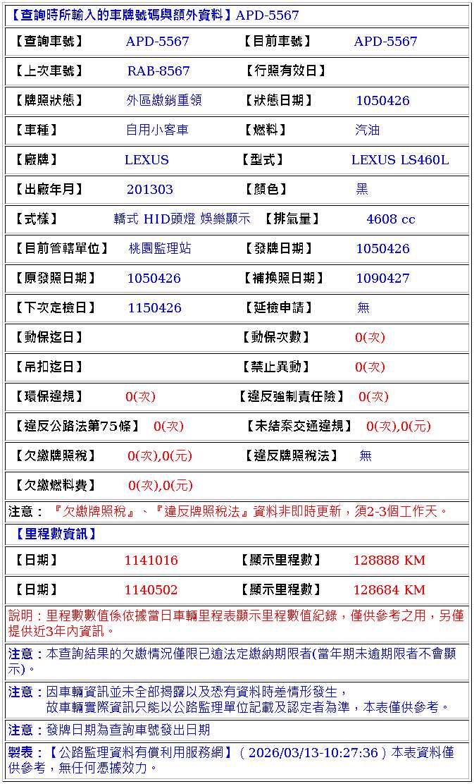 自用 牌照稅:$46170元