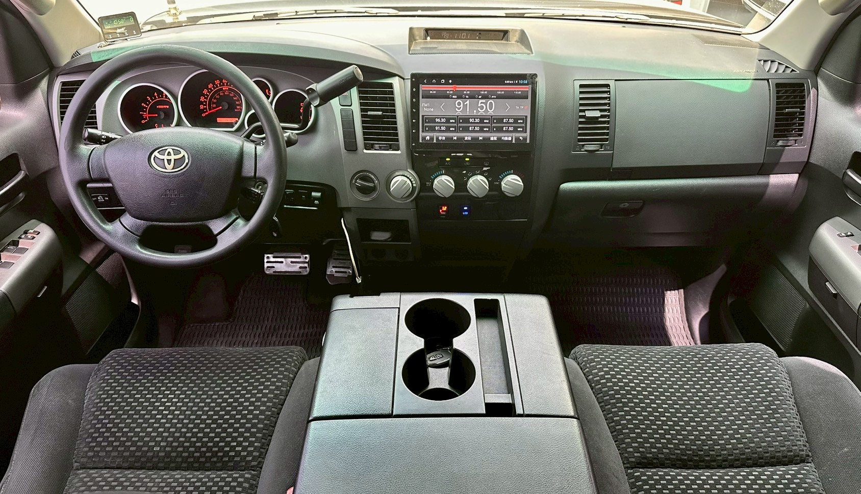 TUNDRA PLATINUM 4×4 CrewMax 搭載一具全鋁合金打造的5.7升「i-Force」V8汽油引擎(與LEXUS LX570相同),最大動力輸出為381hp/5600rpm最大馬力和55.3kgm/3600rpm最大扭力,搭配六速手自排變速箱,0~100km/h加速成績為6.7秒,雖然不是一部性能車,但著重加速性的駕馭樂趣確實讓Tundra具備一般房車的密齒比,除了先天驚人力道外,變速箱齒輪比設定更能應付高速公路和山道不同加速需求,至於有了加力箱的四輪驅動系統則更彰顯它的越野實力。油耗反映在7.2km/L高速油耗和5.5km/L市區油耗數據上。