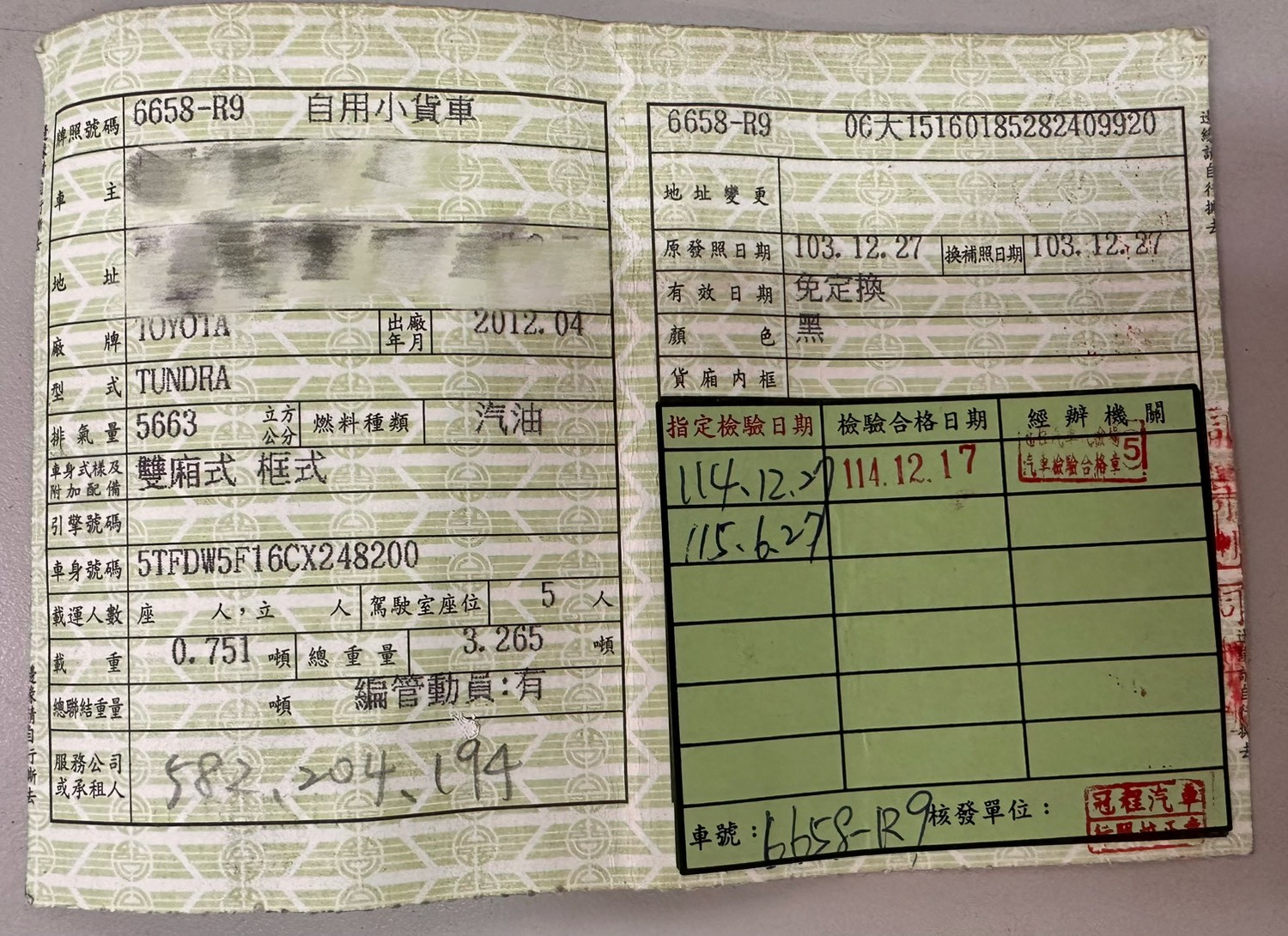 #合法5人座貨車牌照